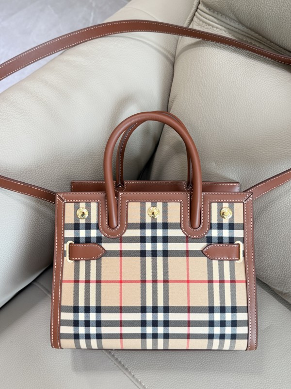 버버리 Burberry 2671 Mini Vintage Check Two-Handle Title Bag Archive Beige 26cm