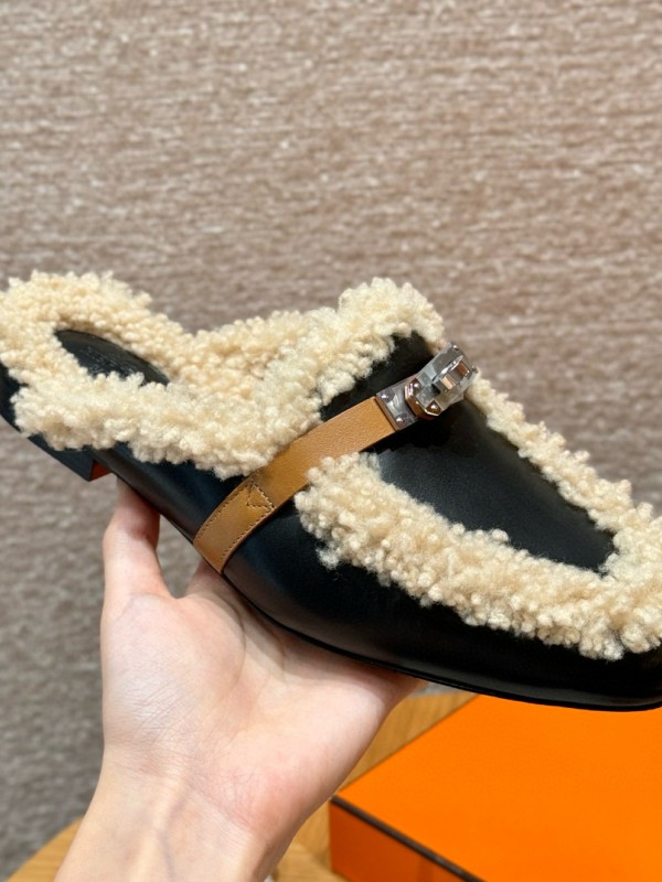 에르메스 Hermes 188 Oz Mule Woolskin and Chamois&89 Noir