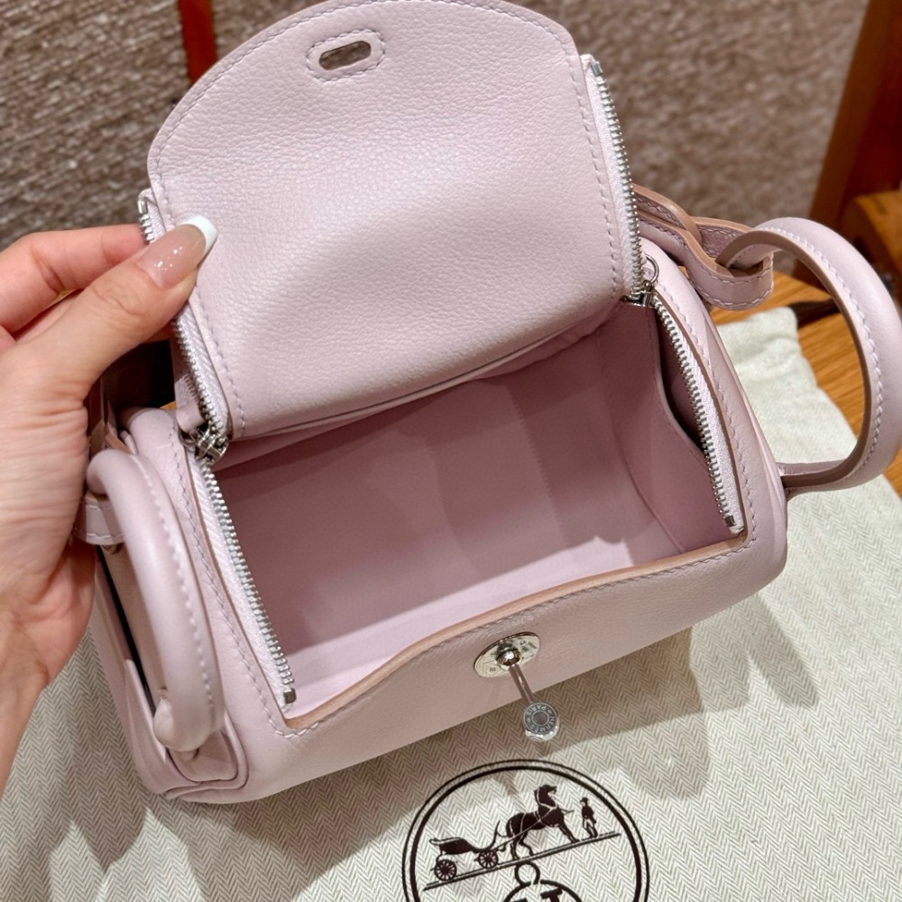 에르메스 Hermes Mini Lindy 19cm Swift 09 Mauve pale/silver