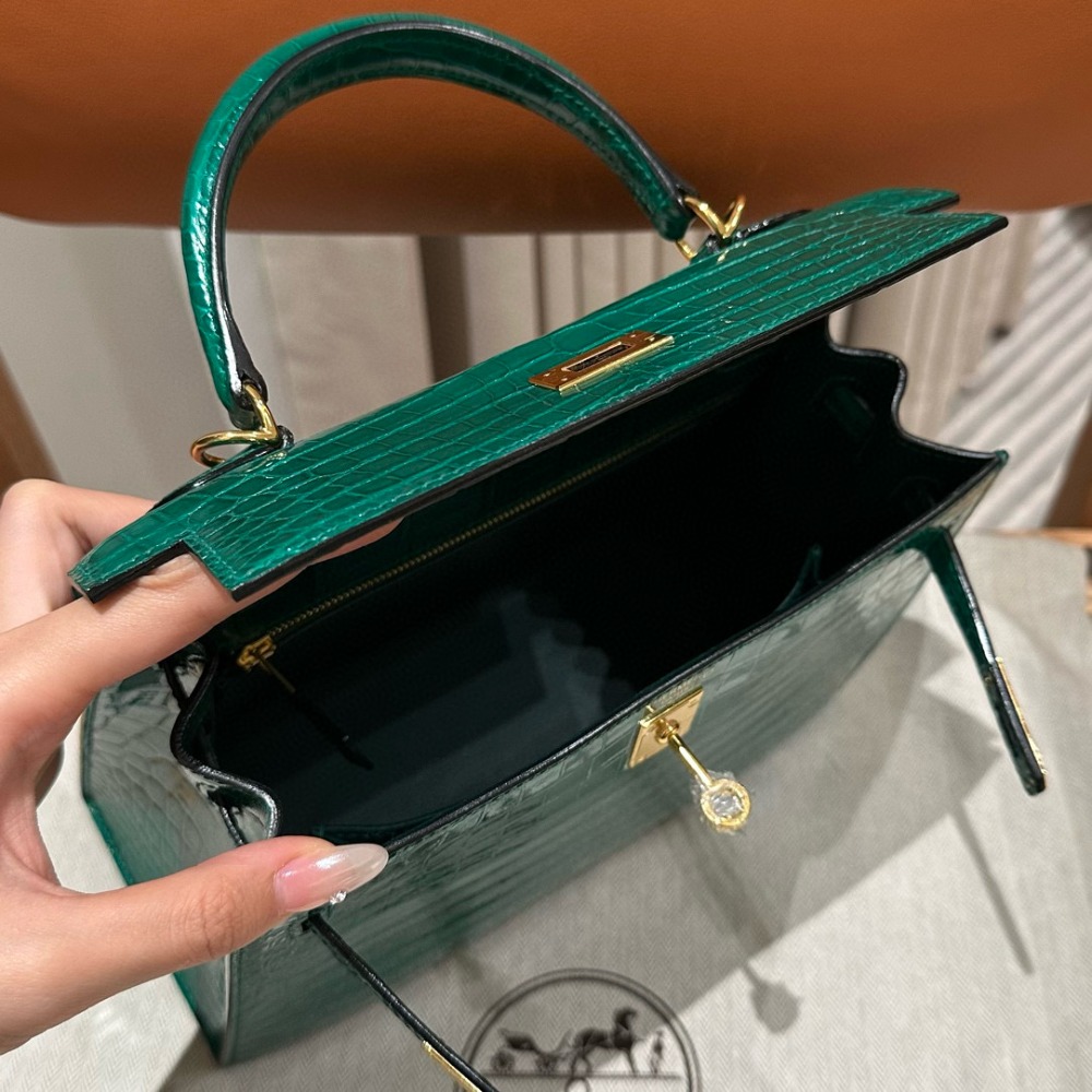 에르메스 Hermes Kelly 25cm Alligator 6Q Vert Emeraude/gold