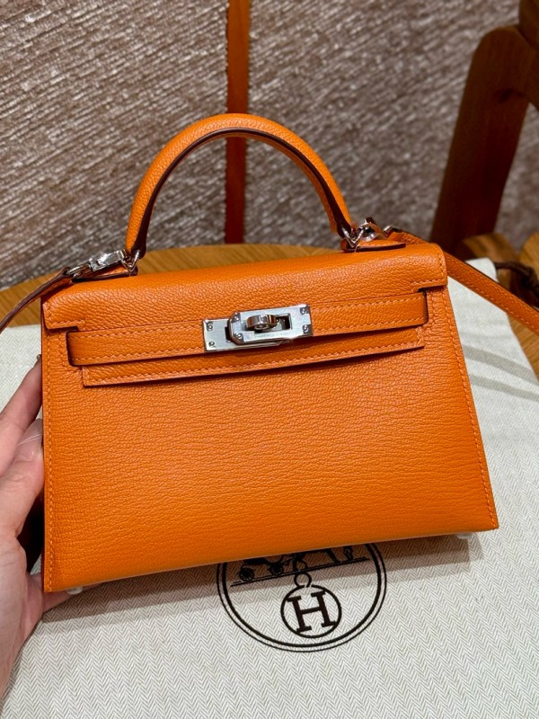 에르메스 Hermes Mini Kelly 19cm Chèvre 93 Orange/silver > A 가방