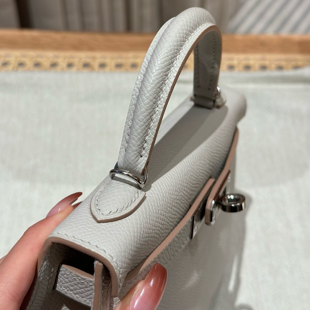 에르메스 Hermes Mini Kelly 19cm Epsom 80 Gris Perle/silver