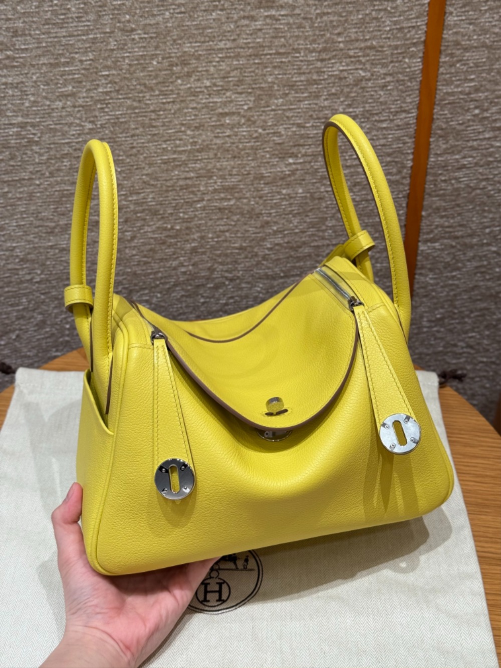 에르메스 Hermes Lindy 26cm evercolor 9R Lime/silver > A 가방