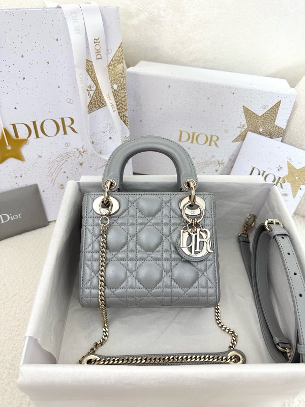 • 디올 Dior Mini Lady Dior Bag Light grey gold 17cm