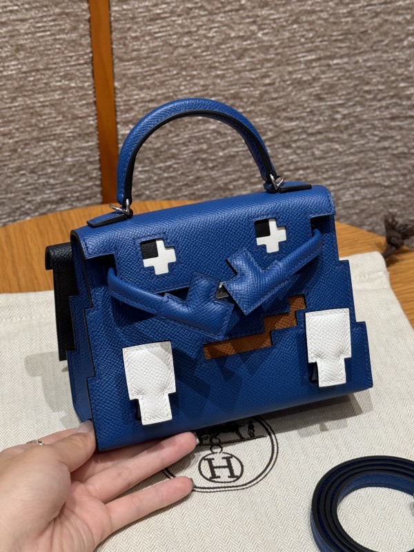 에르메스 Hermes Kelly Doll picto 16.5cm Epsom 73 Blue saphir and 89 Noir/sliver