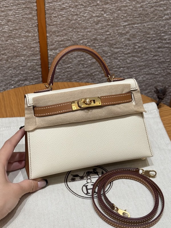 에르메스 Hermes Mini Kelly 19cm Epsom i2 Nata and 37 Gold/gold