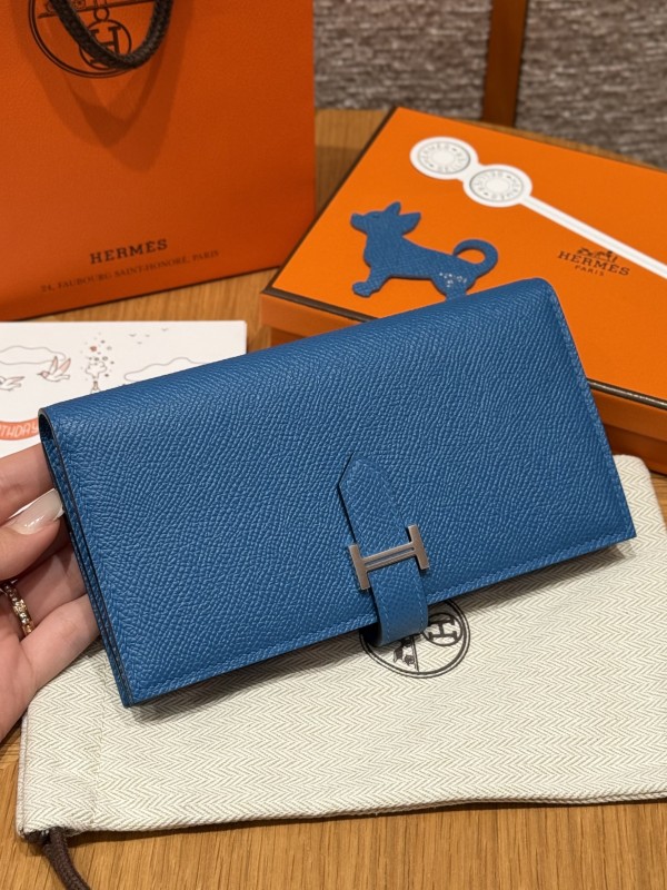 에르메스 Hermes Bearn wallet Soufflet 17.5cm Epsom 7Q Blue Mykonos/silver