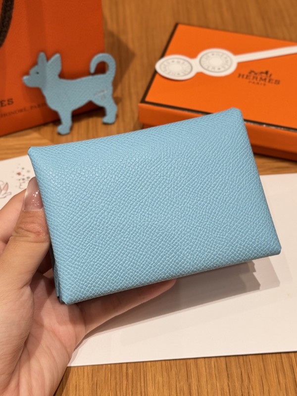 에르메스 Hermes Calvin duo Card Holder 10.5cm Epsom 7N Celeste/silver