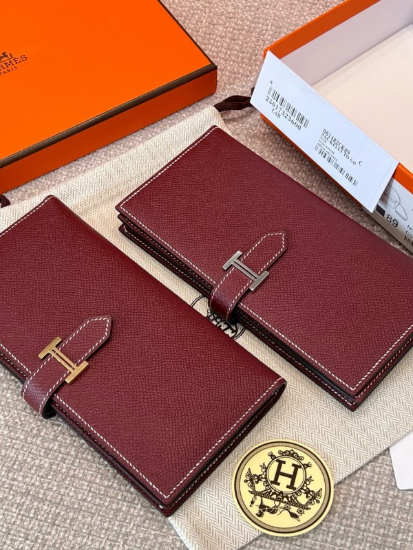 에르메스 Hermes Bearn wallet Soufflet Epsom 55 Rouge H