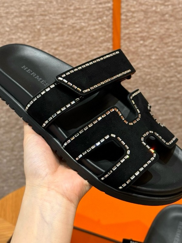 에르메스 Hermes 225 Chypre Sandal Chamois&drilling & 89 Noir > E 여성 슈즈
