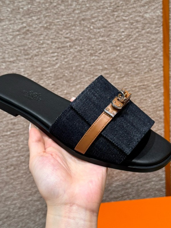 에르메스 Hermes 183 Giulia sandal Calfskin&Cowboy blue and Naturel
