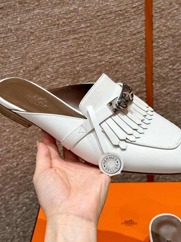 에르메스 Hermes 188 Oz Mule Goatskin&01 Blanc > E 여성 슈즈