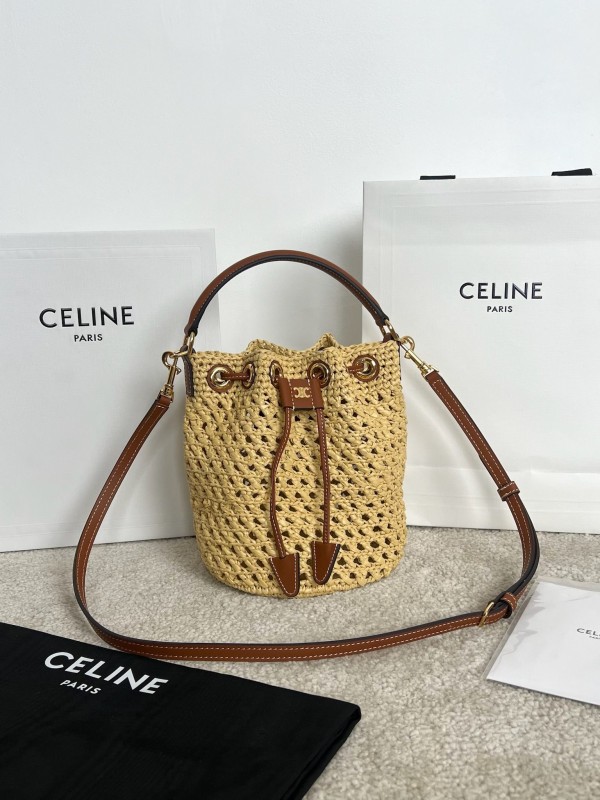 셀린느 Celine 122622 Teen Clara Bag in Raffia and Calfskin Natural Tan