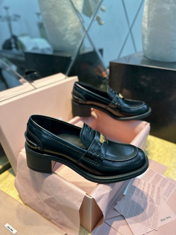 미우 미우 Miu Miu 브러쉬드 레더 로퍼 블랙