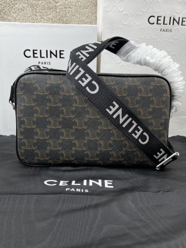 셀린느 Celine 197202 Medium Messenger Bag in Triomphe Canvas Black 23cm > Celine