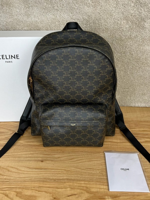 셀린느 Celine 188382 Medium Backpack in Triomphe Canvas Calfskin Black > Celine