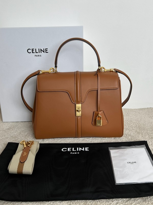 셀린느 Celine 187373 Classique 16 Bag in Satinated Calfskin Black 32cm > Celine