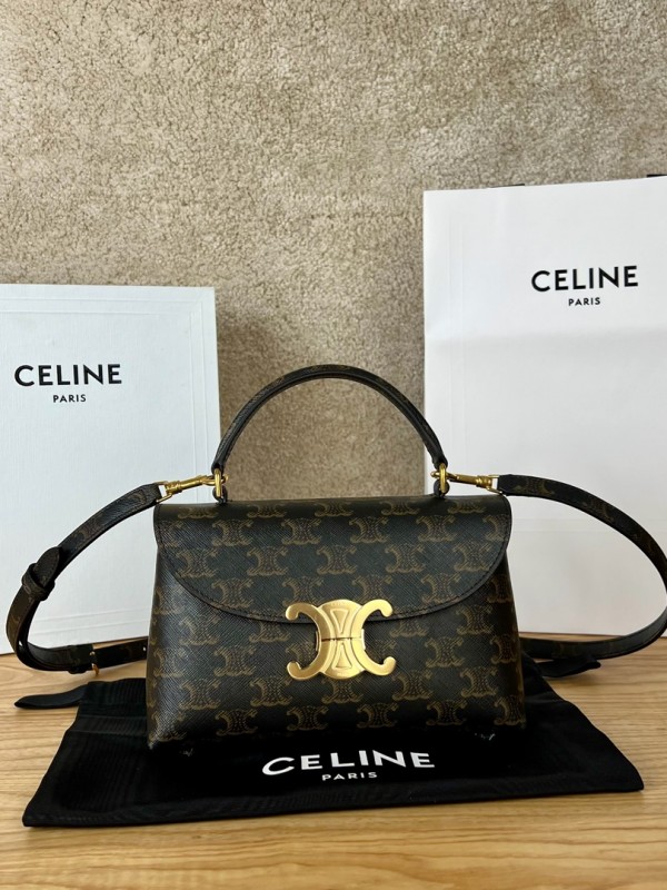 • 셀린느 Celine 118112 Teen Nino Bag in Triomphe Canvas Tan 21cm