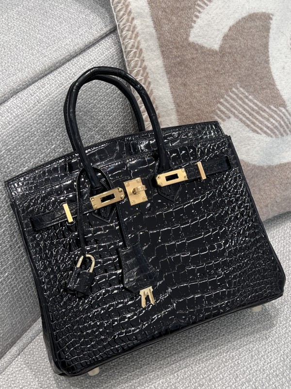 에르메스 Hermes Birkin 25cm France Hcp Porosus crocodile 89 Noir/gold > A 가방