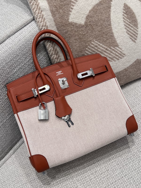 에르메스 Hermes Birkin 25cm Toile France Leather 5F Potiron/silver