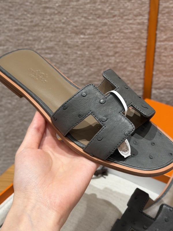 에르메스 Hermes 181 Oran sandal KK ostrich&Lron gray